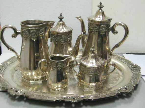 6pc Louvre Mexican Heavy Sterling Tea and Coffee ServiceApr 02, 2026Mexican Sterling Silver Seven-Piece Coffee and Tea Service with Tray, Sanborns, 20th Century, Height4 days Left19th Century Six Pc. French Silver Tea and Coffee Service (~8,000grams)5 days LeftGeorg Jensen Sterling Silver Art Deco 7 Pieces Tea Set , Tray 22"x13" - W: 165 ozApr 04, 2026S. Kirk & Son Silver Tea Set5 days LeftSix Piece Tea Service, Solid Sterling Silver, Marked Dominick And Haff, Model #1072Apr 18, 2026Gorham Plymouth 5-Piece Sterling Silver Tea Set2 days LeftReed & Barton Sterling Silver Tea Service2 days LeftGorham "Plymouth" Sterling Silver Tea Set5 days Left6 Pcs Gorham Sterling Silver Tea Set 3,133.4 gApr 14, 2026AMERICAN FOUR-PIECE STERLING SILVER TEA SERVICE2 days LeftAmston | (5) Repoussé Sterling Holloware Tea & Coffee ServiceThree Pieces Mexican Silver Coffee Service with Tray3 days LeftVtg. 800 Silver 4pc Tea & Coffee Set - 50.995ozApr 03, 2026Four Piece German Silver Individual Tea Service and Tray2 days LeftTiffany & Co. Silver Four-Piece Tea and Coffee Service2 days Left