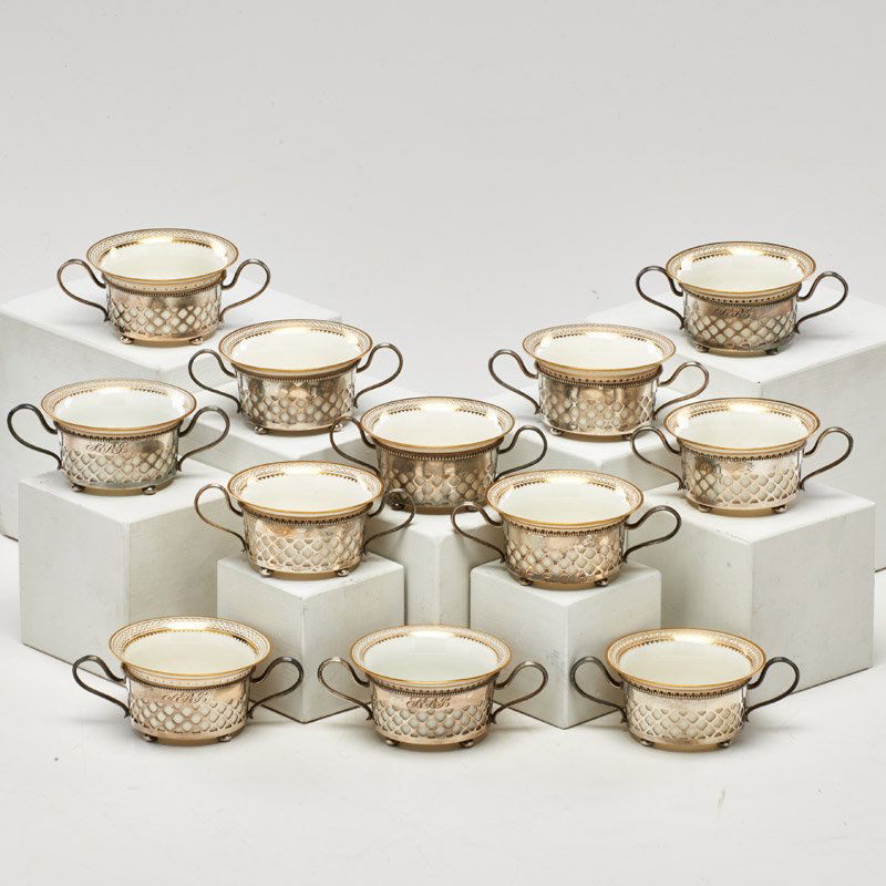 Lot of Shelley Bone China Regency Pattern PiecesMar 26, 2026Lot of (6) Antique Sevres 1846 French porcelain cups and saucersMar 01, 2026Lot of (6) Antique Sevres 1846 French porcelain cups and saucersMar 01, 2026Lot of Empire porcelain gilt cups and saucers. 1) Gilt ground with raised white beaded border.Mar 01, 2026Tapio Wirkkala for Rosenthal. Coffee service for twelve people. Porcelain with gold decoration.Silver Cups, RussiaFeb 25, 20264 Retired Lenox Fine China Lace Point Footed Cup & Saucer Sets B2 hrs LeftWatson sterling silver demitasse set for 12. Reticulated cups with Lenox porcelain inserts. SaucersMar 01, 2026Frank Whiting sterling silver demitasse set for 8. Reticulated cups with Lenox porcelain inserts.Mar 01, 2026Lamberton China Demitasse SetFeb 25, 202610 Minton England Gilt Porcelain Cup & Saucers H5017 circa 1956Mar 15, 202612 Coalport England Cup & Saucers in Citation, circa 1950. Gold TrimFeb 28, 2026THEODORE HAVILAND LIMOGES SOUP CUPS4 hrs Left12 Bohemia Czech Stouffer Decorated Porcelain Bouillon Bowls & Underplates c1940Mar 15, 2026Set of six Gorham sterling silver wine / water goblets with gilt interior, 28.457 ozt. 6 1/2"H x 35 days Left10 Rosenthal Bavaria Stouffer Decorated Porcelain Cup & Saucers c1930Mar 15, 2026