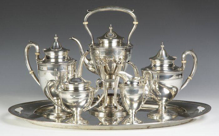 (5) ENGLISH ELKINGTON & CO. STERLING SILVER TEA & COFFEE SERVICEFeb 22, 2026Sterling Silver Estate TablewaresFeb 24, 2026Gorham Sterling 5 Pc. Coffee and Tea SetMar 10, 2026Gorham 6-piece silver plated tea set.Mar 01, 20266PC STERLING TEA SERVICE, INTERNATIONAL, 133 TOWMar 07, 2026Lebolt Sterling Silver 6pc Hand Hammered Tea Set with SSD Monogram4 days LeftGorham Queen Anne Sterling Silver 5 Piece Tea Set 1850-1899Feb 23, 2026Georg Jensen Sterling Silver Art Deco 7 Pieces Tea Set , Tray 22" x 13" Total W: 165 oz4 days LeftTuttle Onslow 6pc Silverplate Tea Set Vintage 1960sFeb 19, 2026American Silver Five-Piece Tea and Coffee Service1 day LeftInternational Silver Wedgwood 5pc Sterling Silver Tea Set VintageFeb 27, 2026Sterling Silver Tea Set2 days LeftFour Piece Kirk Sterling Tea Service with TrayFeb 26, 2026Gorham Plymouth Sterling Silver Tea Service1 day LeftGorham Silverplate Tea and Coffee Service in Medallion Pattern2 days LeftAN AMERICAN SILVER NINE-PIECE TEA AND COFFEE SERVICE AND TRAY MARK OF GORHAM MFG. CO., PROVIDENCE,Feb 19, 2026