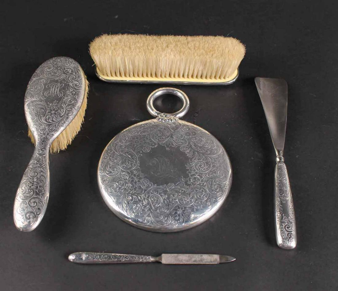 Lot of Silver Plate Spoons Fork & Stainless Steel ShearsJul 17, 2025Sterling 925, 800 French Silver & Silverplate LOTFeb 26, 2026MIXED LOT OF SILVER, WHITE METAL AND OTHER ITEMSFeb 25, 2026ANTIQUE EUROPEAN DANISH SILVER PLATED ITEMSFeb 21, 2026Whiting Dresden Sterling Silver 8pc Vanity Dresser Set MonogrammedFeb 25, 2026Three American Sterling Silver Dresser Articles and an Evening BagFeb 18, 2026Group of Silver Dressing Table Items, Variously Engraved with Whitney Monograms1 day Left(7) UTENSILS WITH STERLING MOUNTSFeb 22, 2026(6) STERLING SILVER VANITY SETFeb 22, 2026Assortment of Sterling Silver Flatware2 days LeftGorham "St. Dunstan" sterling flatware set.Feb 24, 2026Victorian Sterling Silver Vanity Set 8 Pieces No MonogramMar 07, 2026(2) STERLING SILVER HAND MIRROR/BRUSHFeb 22, 2026Collection of antique sterling and silver flatware and serving pieces; Large Norwegian 830 SilverFeb 21, 2026Group of Sterling and Coin UtensilsFeb 26, 2026Monogramed Partial Sterling Silver Flatware Set2 days Left