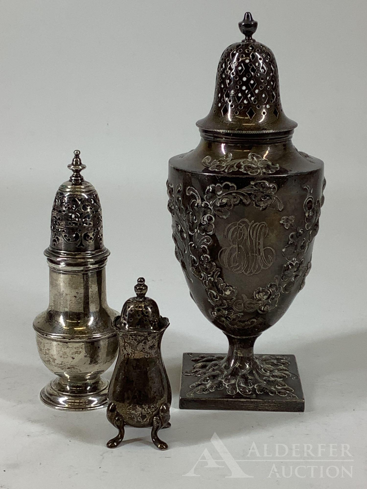Lot of Weighted Sterling Silver Pieces1 day LeftLot of sterling silver dresser accessories, including various covered glass jars and scent bottles.Mar 01, 2026Lot of Georgian sterling silver. 1) Pair of shakers. John Crouch and Thomas Hannam. London, 1796.Mar 01, 2026Meriden, Imperial Silver & Others Assorted 9pc LOTFeb 26, 2026Collection of silver consisting of pepper and salt shakers, jugs, bell, bowl and statue of a boy,4 days LeftSilver Plated Ornate Oil Lamp Base W Candle ShadeFeb 18, 2026Gorham Plymouth sterling silver partial tea/coffee service, 3pc: lidded sugar bowl, creamer, wasteFeb 21, 2026Antique English Sheffield sterling silver muffineer shaker. Hallmarks for Walker & Hall, late 19thFeb 21, 20264 Sterling Silver Trumpet VasesFeb 26, 20267 Sterling Silver Table ArticlesFeb 26, 2026Gorham Sterling Silver 4-Piece Pepper Shaker and Salt Dips Set MonogrammedMar 02, 2026English Georgian sterling silver embossed repousse muffineer shaker, London, 1769, George III. 6Feb 21, 2026Vintage Elevate your ta Silver Collection - Salt & Pepper Shakers (5") & Weighted Candle Holder (3")Feb 28, 2026Sterling and Silver Plate Estate TablewaresFeb 24, 2026Four Sterling Silver Weighted Re-Enforced Salt and Pepper Shakers - Damage Shown in Photos - 2091 day LeftA SET OF THREE GEORGE II SILVER CASTERS MARK OF SAMUEL WOOD, LONDON, 1744Feb 19, 2026
