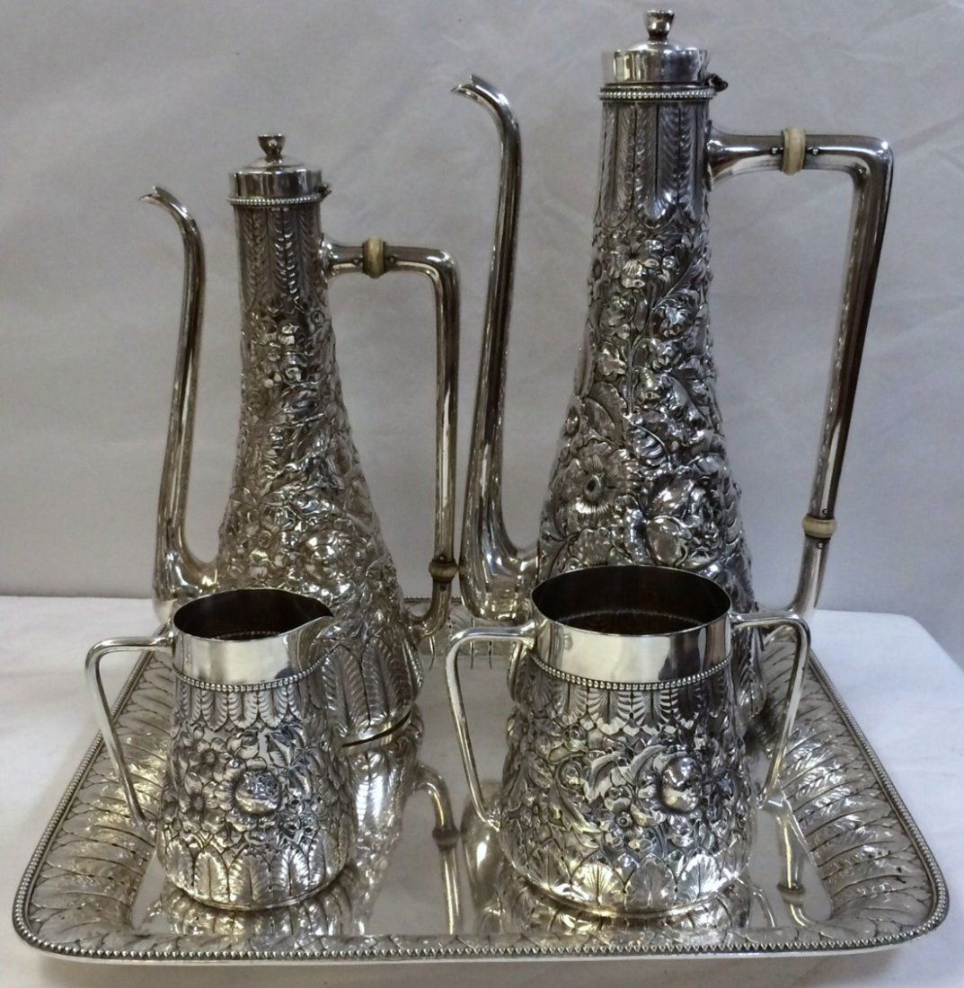 (Lot of) 3 Sterling Silver Service Items, 2 by Emil Hermann3 days LeftGorham Sterling 5 Pc. Coffee and Tea SetMar 10, 2026Vintage Victorian Silver-plated Tea Set 5pcMar 05, 2026(4pc) GORHAM STERLING COFFEE SERVICE3 days LeftInternational Silver Wedgwood 5pc Sterling Silver Tea Set VintageFeb 27, 2026Antique Esquire Sterling Silver Coffee/Tea 4 Piece ServiceJul 17, 2025Five-Piece Silverplate Tea and Coffee Service in the “King Francis" Pattern with TrayMar 07, 20266PC STERLING TEA SERVICE, INTERNATIONAL, 133 TOWMar 07, 20263 pcs Vintage Silver Plate Tea Pots, incl. 2x Silver on Copper Pieces. Very Good Condition.Five-Piece Silverplate Tea and Coffee Service with Large Serving TrayMar 07, 20264 pc Sterling Silver Gayer & Krauss Coffee Tea SetFeb 28, 2026American Silver Four-Piece Tea and Coffee ServiceMar 14, 20265 Pc Silverplated Tea SetMar 04, 2026Four Piece Silverplated Sheffield English Teaset With7 days LeftAmerican Aesthetic Silver-Plate Four Piece Coffee Service, late 19th c., Coffee- H.- 12 1/4 in., W.-Feb 27, 2026Repousse coin silver tea set with tray.4 days Left