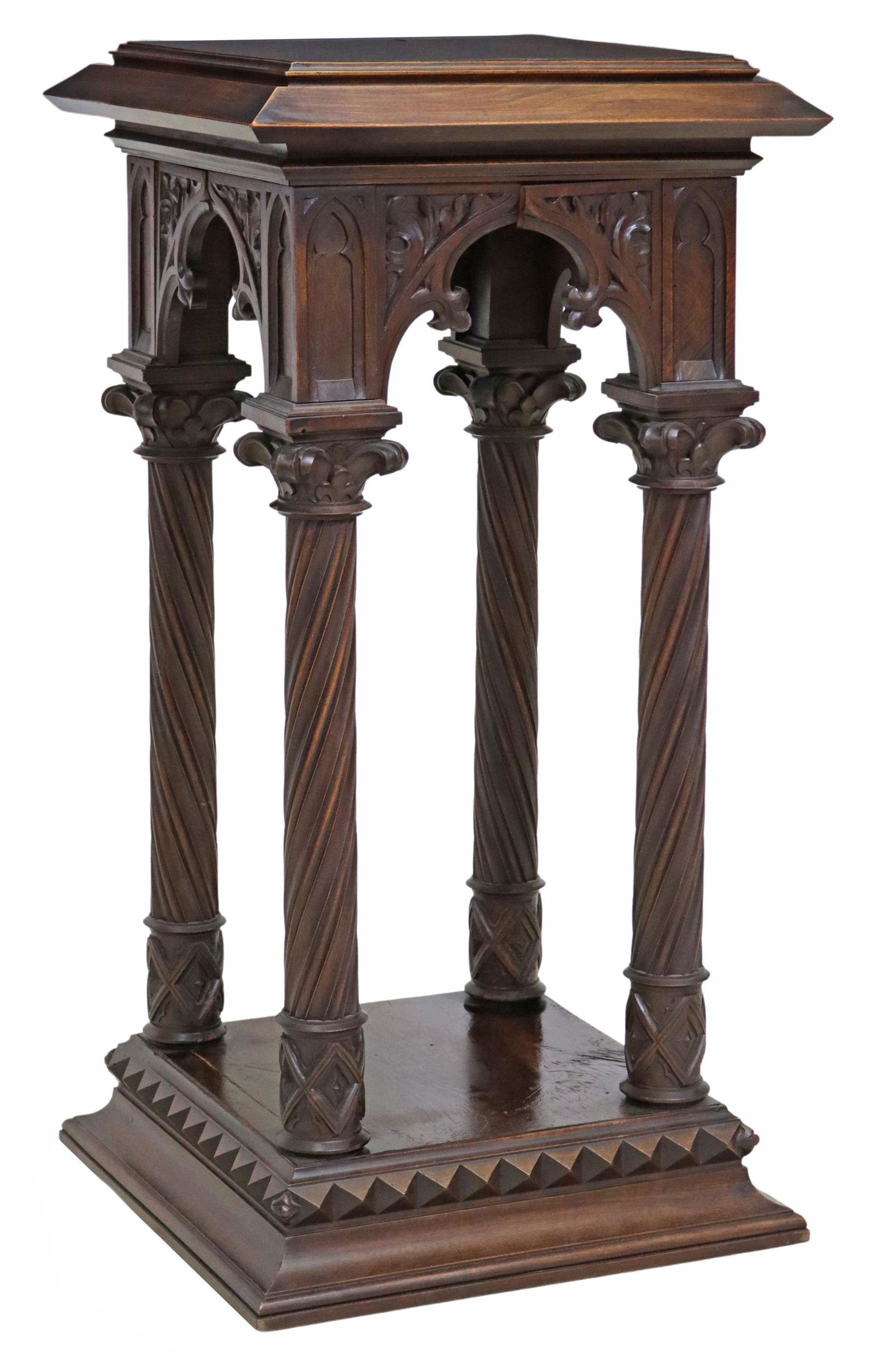 GOTHIC REVIVAL CARVED WALNUT PEDESTAL
