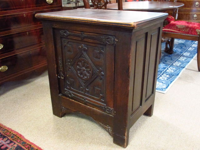 GOTHIC REVIVAL STYLE IRON MOUNTED SIDE TABLE CHEST