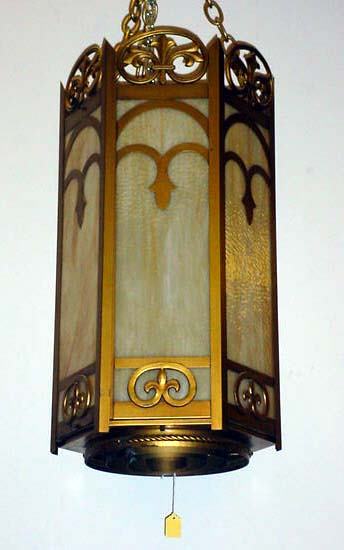 GOTHIC STYLE GILT METAL HEXAGONAL HALL LANTERN