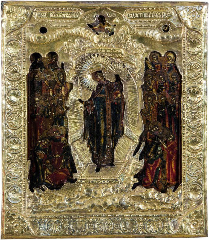 A composed lot of three tempera on wood Russian icons with silver and silver plated oklad.3 days LeftIn Christian iconography Christ PantocratorIn Christian iconography Christ PantocratorIn Christian iconography Christ PantocratorChrist Pantocrator with Selected Saints (John, Peter, Paul, Matthew, Michael, Gabriel, Forerunner,Cathedral of the Saints, letter YaroslavlAppearance of the Virgin to Sergius of RadonezhFeodorovskaya Icon of the Mother of GodIcon of the Mother of God "Unexpected Joy"Mother of God of Kazan with Selected SaintsFour-part (Joy to All Who Sorrow, Satisfy Sickness, Life-Giving Spring, Dinner of the Suffering)Icon of the Protection of the Holy Mother of GodFour-part (Joy to All Who Sorrow, Mother of God the Milk-Giver, 7 Youths, Chosen Saints)Copper Oklad Painted Icon of MadonnaCristo Crocefisso con ai lati Maria, icona suMar 03, 2026Christ the Almighty
