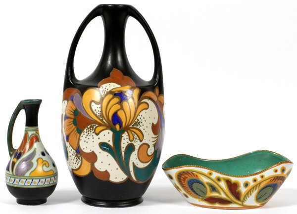 A lot of two Belgian Torhout decorated earthenware objectsFeb 24, 2026A lot of three variously decorated and shaped Chinese porcelain vasesFeb 24, 2026Lot of 3 Chinese Vases & Cup - Tea Dust, etc.2 days LeftCERAMIC VASES7 days LeftLot of (3) Nemadji Art Pottery VesselsMar 15, 2026(11) misc. POTTERY pcs. From Hudson Valley estate, including GOUDA 12.5" high vase, FULPER vase,18 hrs Left(3) TALAVERA POLYCHROME TABLEWARE POTTERY ITEMS, MEXICOFeb 21, 2026A Collection of Mexican Hand Painted Folk PotteryFeb 15, 2026Pottery ThreesomeFive retro jugs in glazed ceramics. Beautiful glazes and shapes. Belgium, 1960s / 70s.Four Vinage Ceramic Brass Glass Pod VasesJul 24, 2025Collection of 'Red Rubin' pottery with red glaze with gold, Upsala-Ekeby, Gefle. Design ArthurDage, Gouda, and a Czech Amphora Vases, 32 days LeftAmphora and Javier Servin Pottery Vessels, 22 days LeftPair of Gouda Juliana Ivora Vases, Circa 19204 days LeftTHREE EUROPEAN ANTIQUE AND VINTAGE PORCELAIN VASESFeb 21, 2026