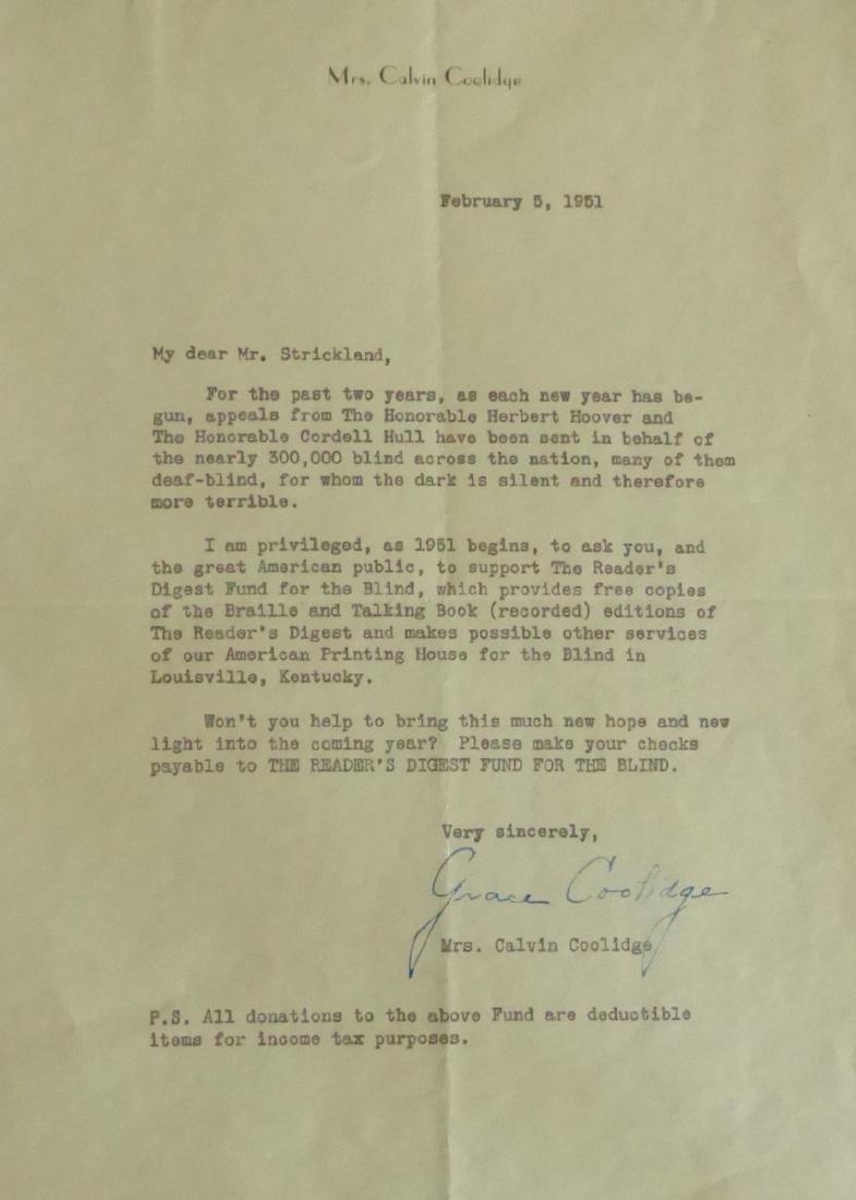 GRACE COOLIDGE - Typed Ltr Signed
