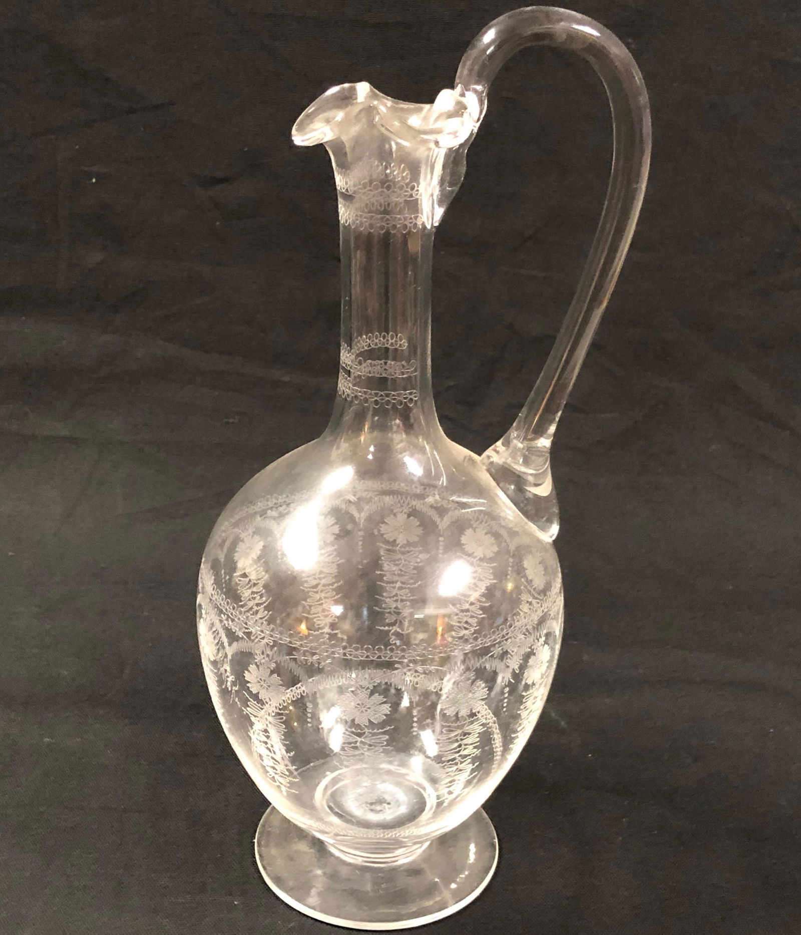 Graceful Etched Glass Pitcher
