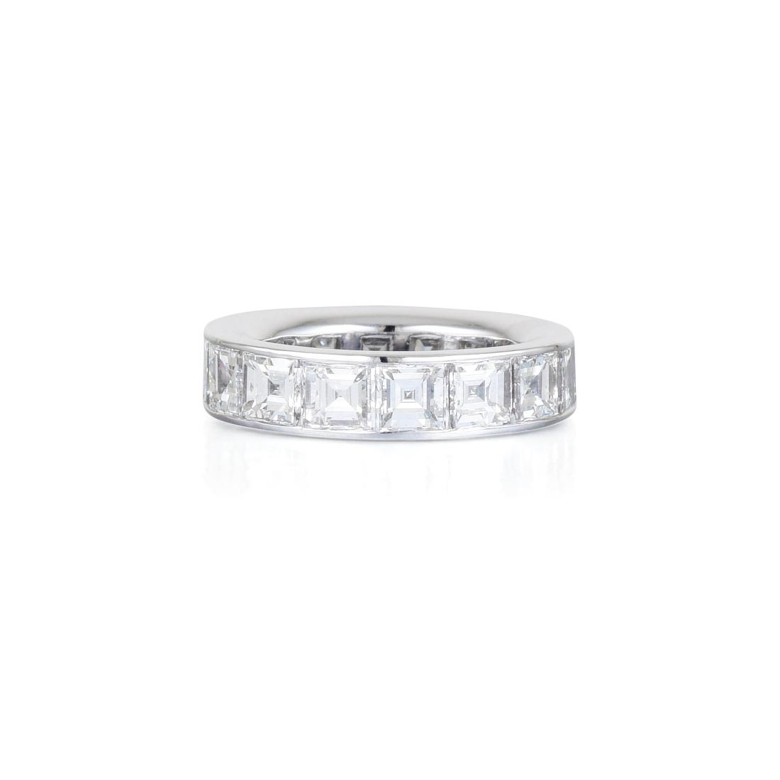 SoldAsscher-cut diamond eternity band ringAsscher-cut diamond eternity band ring Of 18 Asscher-cut diamonds Platinum Ring size 5; Gross weight 3.3 dwtsSee Sold Price