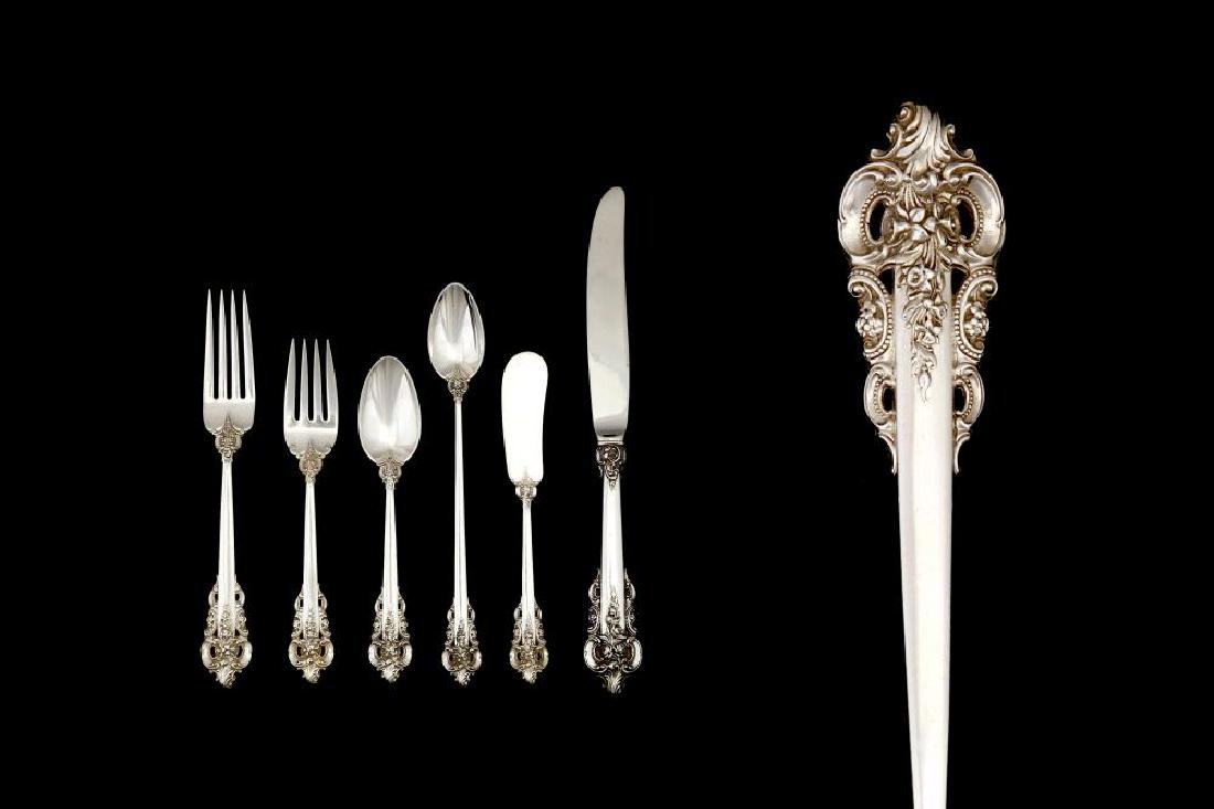 Wallace "Grande Baroque" sterling flatware set.Quinn's Auction Galleries4.2(486)$500(1 bid)Feb 24, 2026