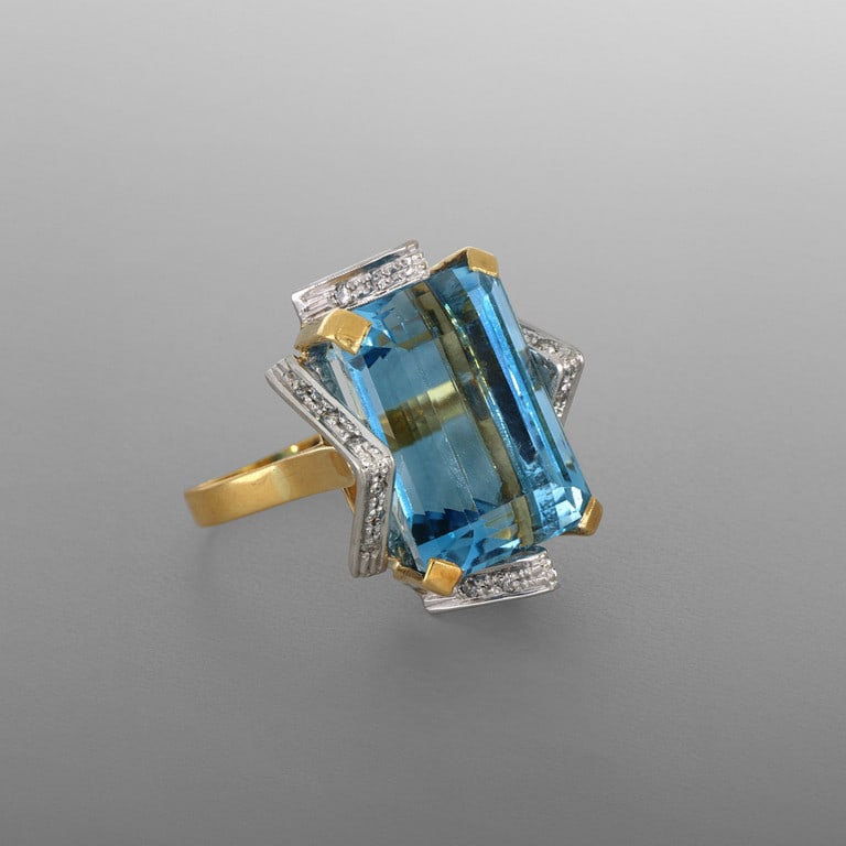 Grande e geometrico anello con acquamarina, la