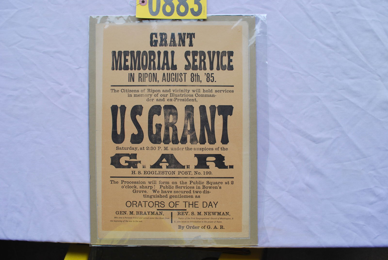 Grant Memorial Service Broadside