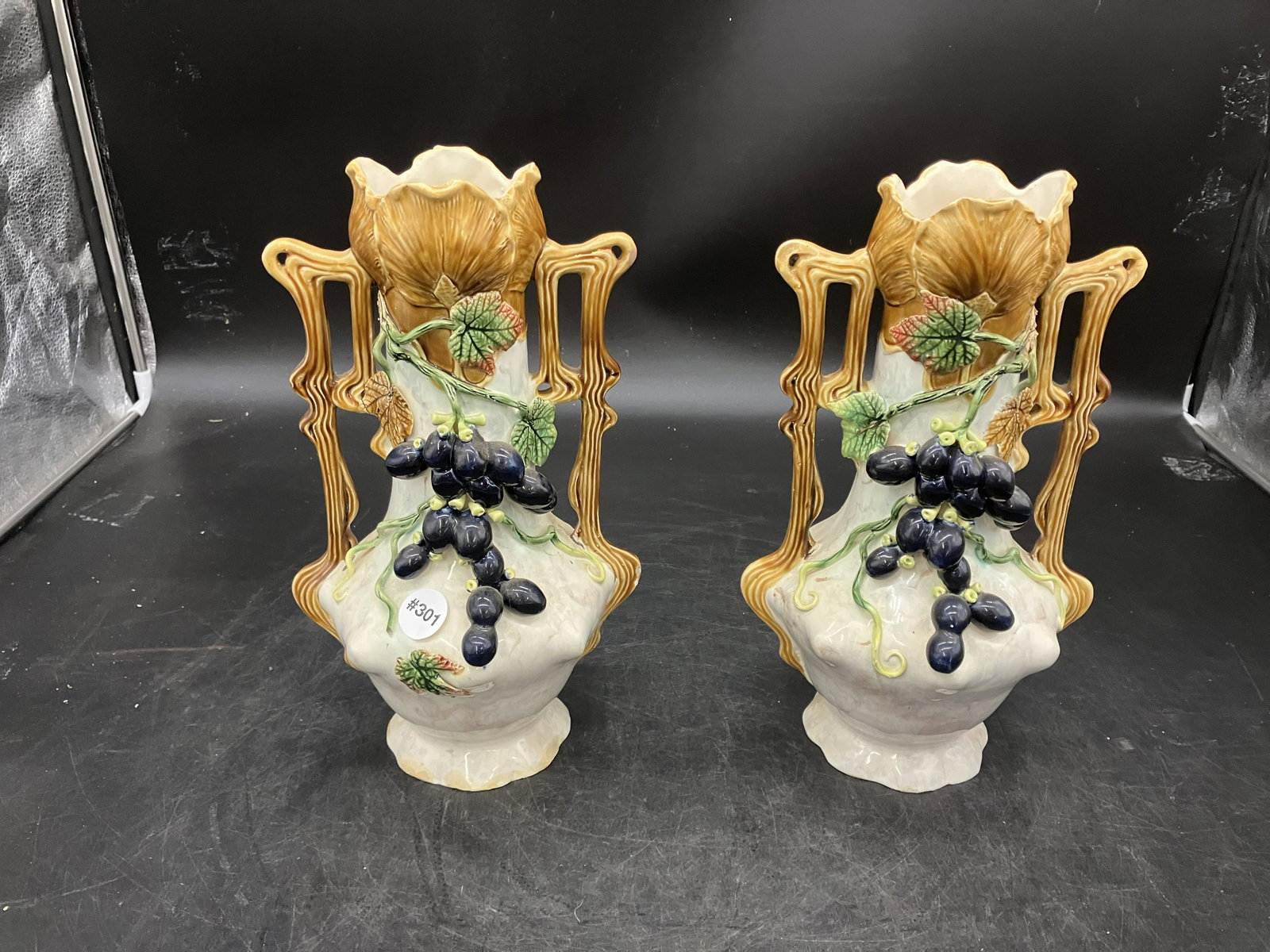 Grape Applied Majolica Vases
