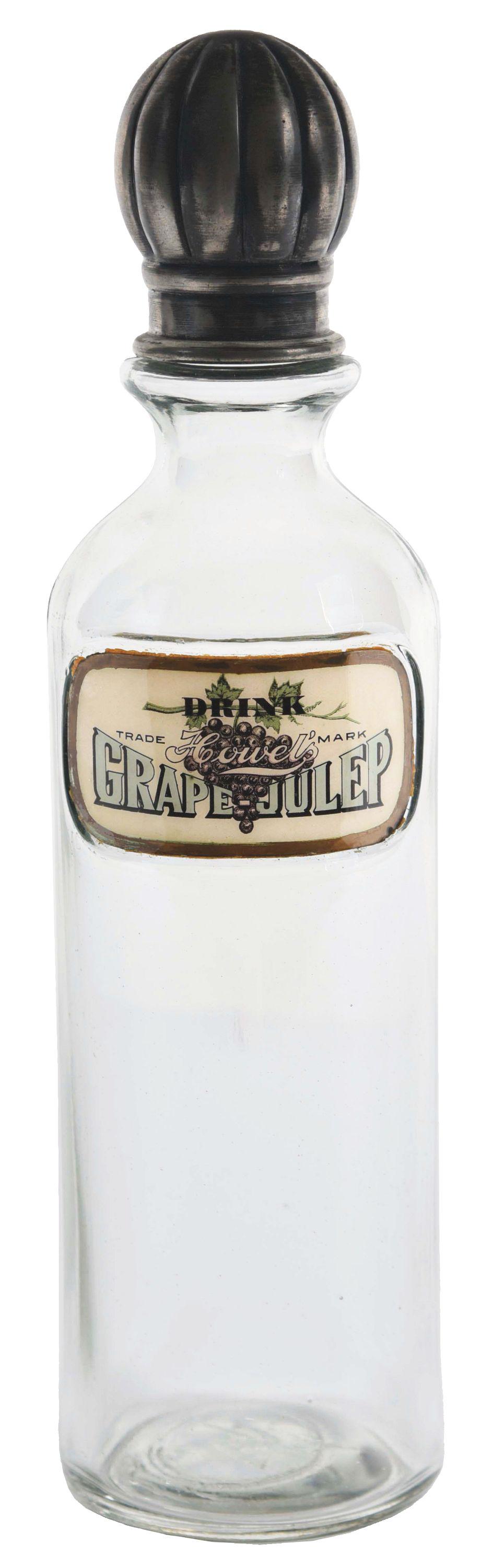 GRAPE JULEP LABEL UNDER GLASS SYRUP BOTTLE.