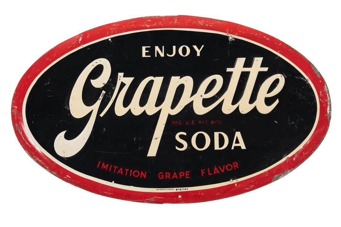 Grapette Soda Single-Sided Porcelain Oval Sign 17"Mar 14, 20261930s Grape Sparkle Soda Tin SignMar 14, 2026Drink Good Grape...That Good Grape Drink Tin SignMar 14, 2026Grapeola signMar 28, 2026Triple AAA Root Beer signMar 27, 2026Grapette Soda "Imitation Grape Flavor" SSP SignMar 21, 2026Drink Coca Cola, Ice Cold signMar 28, 2026Triple AAA Root Beer signMar 27, 2026Coca Cola Sold Here Ice Cold signMar 28, 20261951 Pepsi Cola More Bounce To The Ounce Single Sided Tin SignMar 20, 2026So Grape So Good Single Sided Tin SignMar 20, 2026Pepsi=Cola 5-cent signMar 28, 2026Drink Coca Cola signMar 28, 2026Ice Cold Coca Cola signMar 28, 2026Drink Coca Cola In Bottles signMar 28, 2026Pepsi Cola bottle-cap shaped signMar 28, 2026