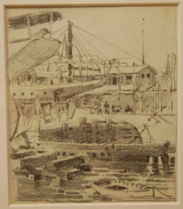 GRAPHITE DRAWING 'HARBOR SCENE' by F. LUIS MORA