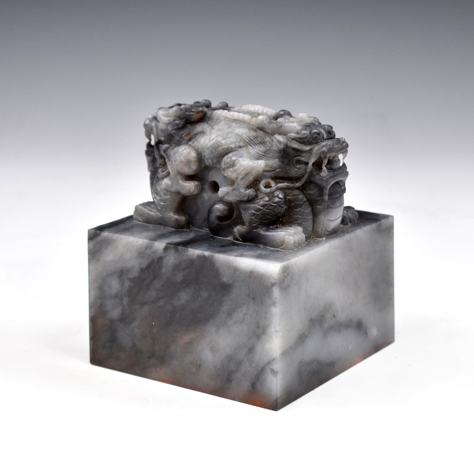 Vintage Hetian Jade Hand-Carved Beast Seal w Dragon