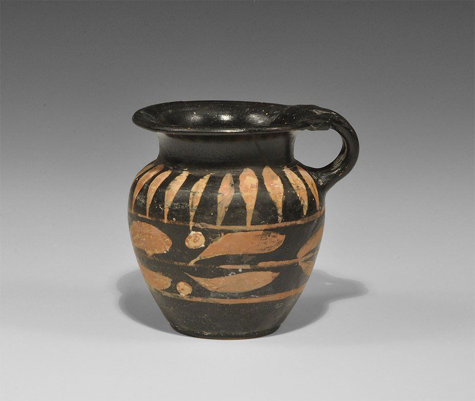 A PAINTED POTTERY JAR, BANSHAN TYPE, NEOLITHIC PERIODMar 11, 2026Greek Bowl with Crimson and Black DecorationsMar 03, 2026Greek Black-Glazed Thistle MugMar 04, 2026Black-glazed jug, China Ming Dynasty or earlier,Mar 13, 2026Apulian Squat Terracotta LekythosMar 04, 2026Greek Terracotta Handled LekythosMar 04, 2026Amlash Pottery Jug with Zoomorphic HandleMar 05, 2026Western Asiatic Terracotta Zoomorphic Vessel with Glass InlaysMar 05, 2026Corinthian / Etruscan Black-Figure Amphoriskos (or Small Amphora), ca. 600–575 B.C.Mar 05, 2026ATTIC BLACK-FIGURE OINOCHOE WITH DIONYSIAC SCENEFeb 01, 2026Proto-Corinthian Painted Terracotta AryballosMar 03, 2026Cypriot Decorated Oinochoe3 days LeftLarge Greek Terracotta Oinochoe with SwastikasMar 04, 2026AN ETRUSCO-CORINTHIAN POTTERY ARYBALLOS, LATE 7TH TO EARLY 6TH CENTURY BCMar 12, 2026South Italian Gnathian Shoulder Lekythos with Swan3 days LeftWestern Asiatic Bichrome Terracotta JugMar 05, 2026