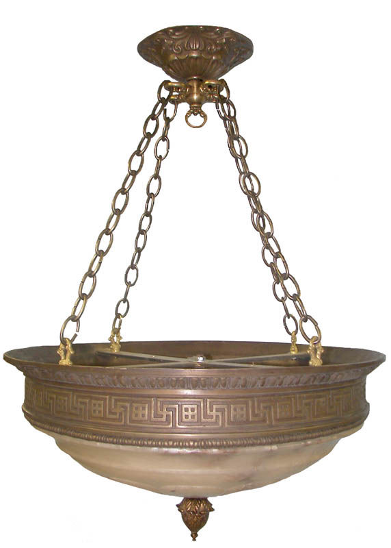 Greek key pattern dome w/alabaster center shade