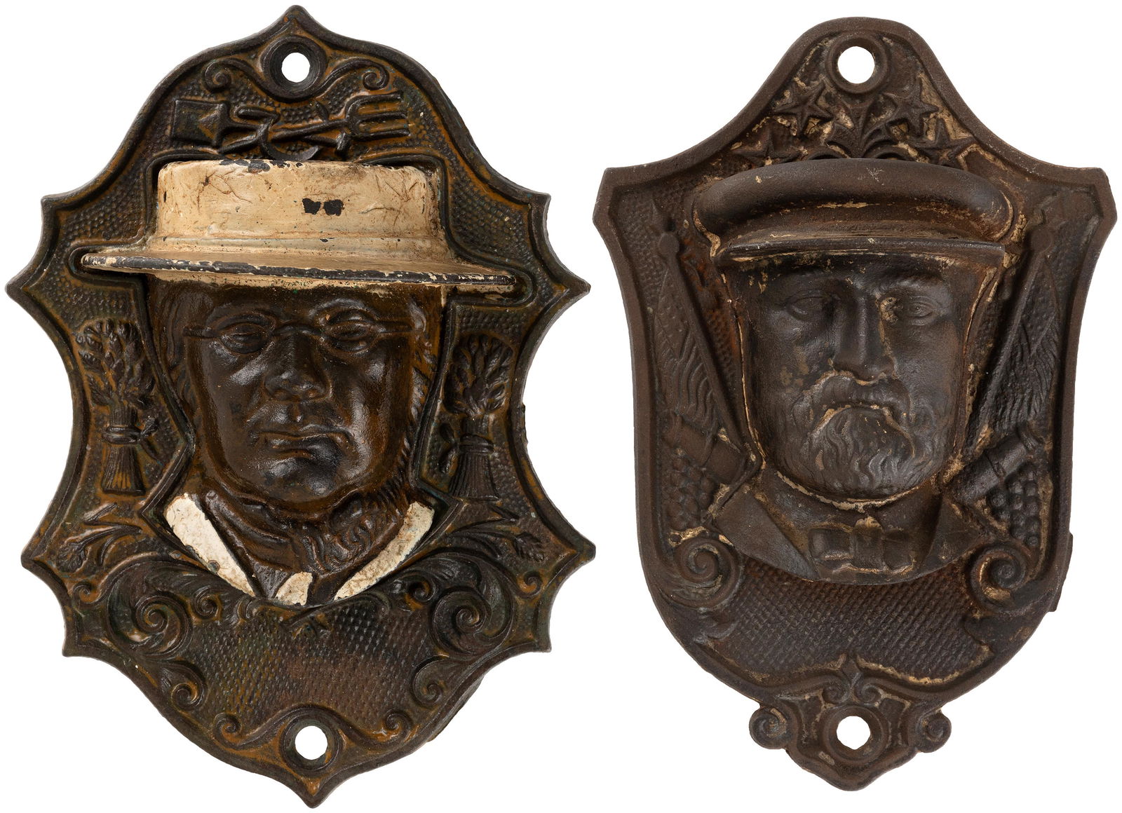 NATIVE AMERICAN CHALKWARE COUNTRY STORE DISPLAY / ADVERTISING PLAQUES, LOT OF TWO2 days LeftGRAIN-PAINT DECORATED OVAL FRAME WITH CONVEX GLASS AND PHOTOGRAPHS, LOT OF TWO3 days LeftASSORTED CUT-AND-PASTED AND HOLLOW-CUT SILHOUETTES, LOT OF SEVEN IN FIVE FRAMES3 days LeftA Lot of 2 Thecae951 Lots AwayLt3 Cast Iron Victorian Silhouette Wall Plaques Bx1 day LeftVIRGINA METALCRAFTERS / WILLIAMSBURG RESTORATION METALCRAFTERS CAST BRASS SINGLE-ARM CANDLE WALL3 days LeftLeo Frank Nock (American, 1875-1949) Portrait bust of Abraham Lincoln, bronzeMar 26, 2026Dramatic 1905 US COPPER PLAQUES Embossed Cavalry PairMar 28, 2026Collection of Antique Cast Figural Trinket or Pin Dishes, Risque LadyMar 21, 2026ANTIQUE FRENCH CAST IRON FIREPLACE ANDIRONS FIRE DOGS5 days LeftFour Bronze Profile PlaquesMar 11, 2026England. Royal Arch AE Masonic Token.Mar 11, 2026Anglo-Scandinavian Viking Bronze Stirrup Apex Mount Group3 days LeftGroup of 2 Antique Cast Iron Monkey Match Safes4 days LeftT. Slaight Wabash Railroad Brass Heart Shaped Lock and Tapered Barrel Single Ring Key3 days LeftPAIR OF 19TH CENTURY BRITISH POLITICIAN PAINTED CAST-IRON WALL PLAQUES / BUSTS3 days Left