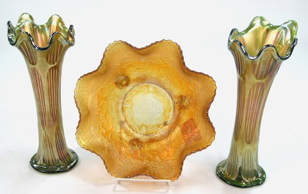 Green carnival glass vases
