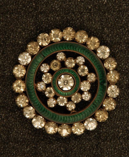 GREEN ENAMEL and PASTE BUTTON. Extra large brass ha