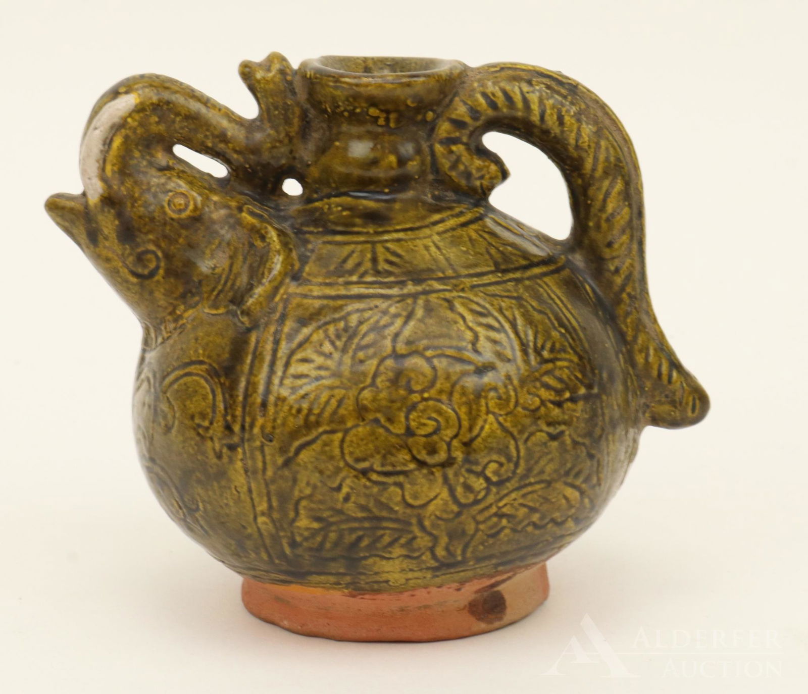 A CARVED GREEN-GLAZED POTTERY POURING VESSEL (KENDI), TANG TO SONG DYNASTYMar 11, 2026Green-glazed earthenware vase, China, probably Jin Dynasty,Mar 13, 2026A SAWANKHALOK GREEN-GLAZED STONEWARE 'ELEPHANT' JARMar 12, 2026A Rare Tang Tri-Color Glazed Pottery Flower Pattern Dragon-Handle EwerMar 05, 2026A celadon carved gilt potMar 07, 2026Chinese Celadon Ewer with Carved Floral Motif3 days LeftAn Exquisite Yue yao Celadon Glazed Flower Pattern FlagonMar 18, 2026An Exquisite Teadust Glazed Beast-Ears VaseMar 20, 2026An Exquisite Tang Tri-Color Glazed Pottery Dragon Pattern Double-Ears VaseMar 20, 2026An Exquisite Celadon Glazed Flower Pattern Teapot,with poemMar 11, 2026Chinese Cloisonne Enamel Gild 3 Legs Elephant Ear Dragon Incense BurnerMar 10, 2026A carved floral pattern pot of the Yaozhou kiln in the Song DynastyMar 07, 2026An Exquisite Bronze With Inscription Ewer574 Lots AwayCharming Handcrafted Enamelled Clay Vase - Signed P.M.EA Chinese 'Longquan' celadon-glazed incised vaseMar 15, 2026A Song Dynasty celadon glazed open-piece elephant ear gilt vaseMar 21, 2026