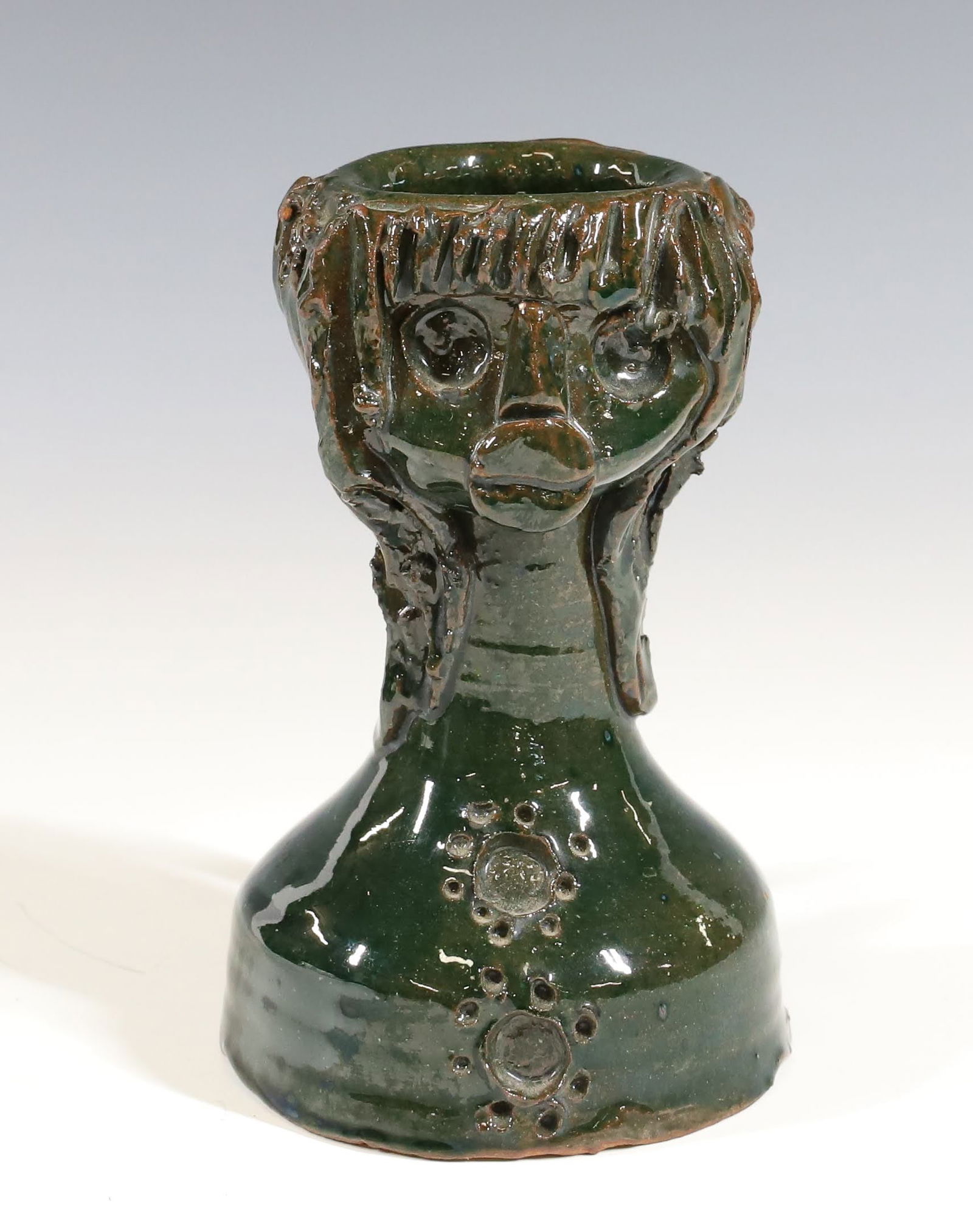 GREEN GLAZED REDWARE FACE VESSEL