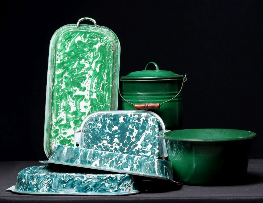 GREEN GRANITEWARE COLLECTION INCLUDING CHRYSOLITE