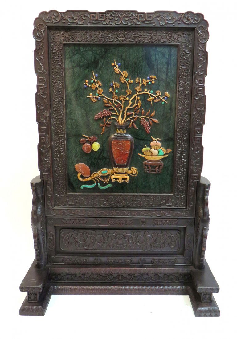 Green Jade Screen With Zitan Stand