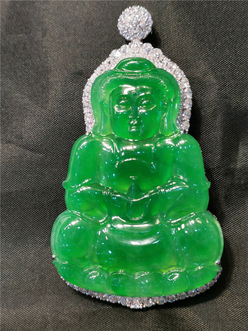 AN IMPRESSIVE VIVID GREEN JADEITE 'GUANYIN' PENDANT WITH DIAMONDS 20TH CENTURYLeslie International Auction Inc$5,0006 days Left