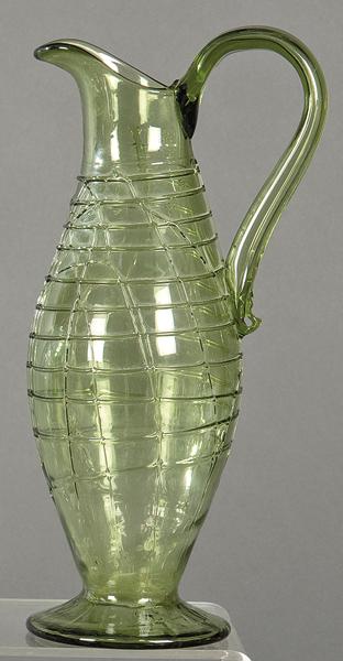 Green Mallorcan glass jug with applied threads.