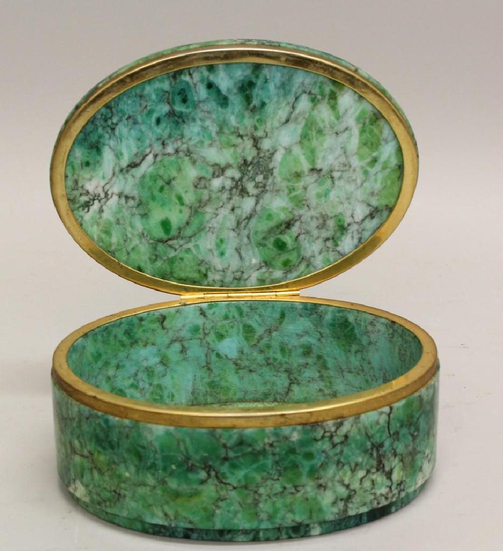 Oval Green Stone Decorative Trinket Box with Hinged Lid2 days LeftItalian Alabaster Hinged Box With Brass TrimFeb 10, 2026.800 Gilt Silver & Jade BoxFeb 26, 2026Aventurine flowerpot with bronze mountsFeb 11, 2026Ca 1860 French Sèvres Neoclassical Green Gold Porcelain BoxMagnificent Russian Malachite & Bronze Jewelry Box, 19th C.3 days LeftA FRENCH JEWELED AND ENAMELED GOLD SNUFF-BOX PARIS, CIRCA 1880-1890Feb 19, 2026A GILT BRONZE SQUARE COVERED BOX INLAID WITH ARCHAIC JADEFeb 14, 2026Vintage Brass and Etched Green Art Glass Jewelry BFeb 17, 2026Exquisite Ladies 1.40 ct Green Malachite Gemstone Oval Cut RingFeb 19, 202614K Yellow Gold Malachite Brooch PendantMar 19, 2026Emerald Green Floral Fabere Egg Hidden Compartment Trinket BoxFeb 19, 2026ANTIQUE MOSER VICTORIAN GREEN ENAMELED GLASS TRINKET DRESSER BOX4 days LeftEmerald Green Floral Faberge Egg Hidden Compartment Trinket BoxFeb 26, 2026Unusual Enamel And Stone Trinket BoxFeb 15, 2026Vintage 3-Piece Gem Stone Necklace Gold PlatingFeb 26, 2026