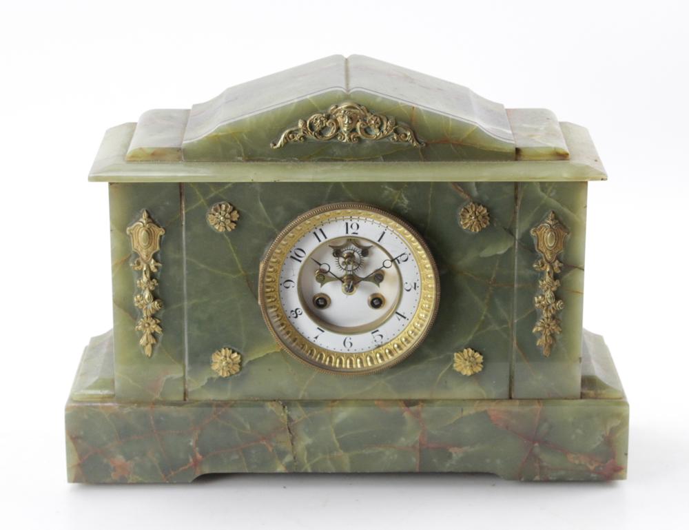 French Napoleon III Green Onyx Temple Form Mantel Clock, late 19th c., H.- 11 in., W.- 9 5/8 in.,Feb 27, 2026Art Deco Banded Onyx and Enamel Mantel ClockMar 26, 202619th Century French Empire Bronze & Two Tone Marble Mantle ClockMar 15, 2026Art Deco Two-Tone Marble and Gilt Bronze Mantel Clock, Circa 19306 days LeftFrench Samuel Marti Mantle Clock.Feb 18, 202619th C. French Onyx and Champleve Mantel ClockFeb 26, 2026Wm. L. Gilbert Clock Co. Ebonized American Mantel Clock, Patent 18807 days LeftAlabaster mantel clock3 days LeftAntique Tiffany & Co. French Marble Mantel ClockFeb 18, 2026Late 19th C. Marble Clock, 10"h (chips noted).2 days Left"Labedouche A Paris" French Empire French Marble & Gilt Bronze Mantel Clock1 day LeftMantel ClockFeb 21, 2026French Babbitt & Alabaster Mantel ClockFeb 24, 2026An Italian Brass Green Marble Figural Clock5 days LeftAmerican Classical Mantel Clock, “White House” Style (Sessions Clock Co.)Mar 15, 2026[CLOCKS] A. Kuenstler Mantel ClockMar 05, 2026