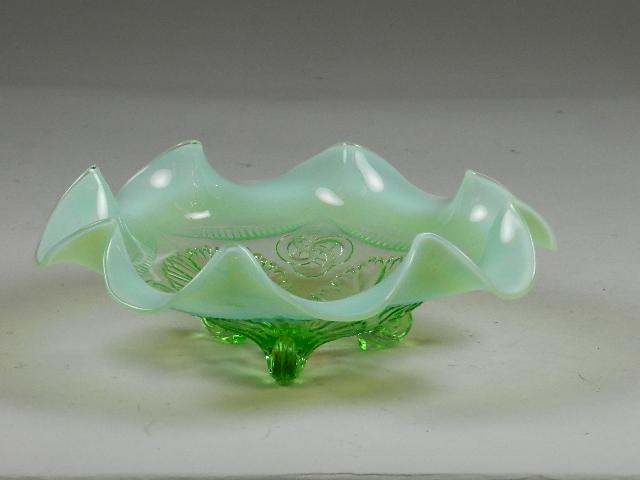 Green Opalescent Ruffled Bowl