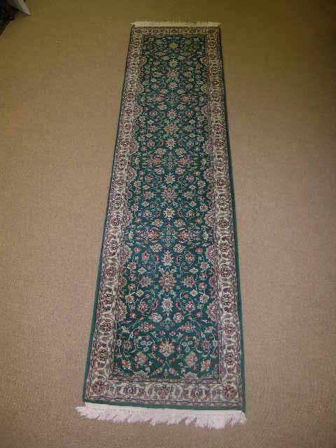 GREEN ORIENTAL HAND KNOTTED WOOL RUNNER CARPET