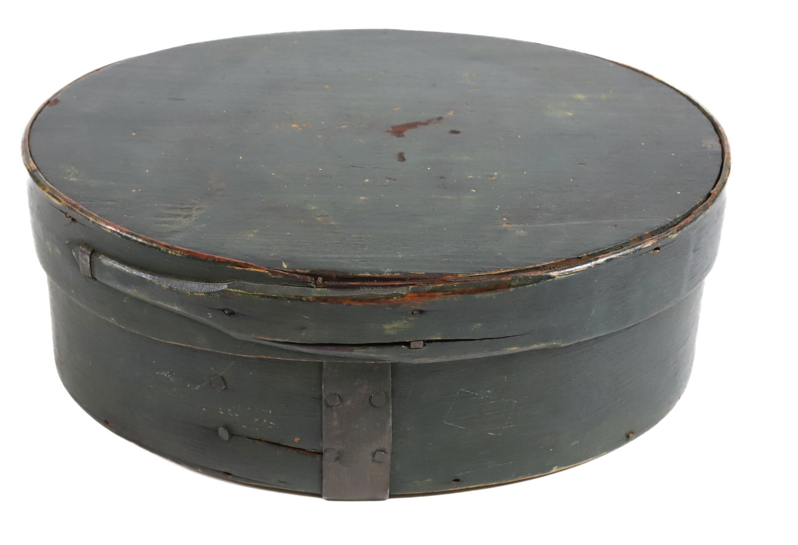 AMERICAN GREEN-PAINTED BENTWOOD AND CHIP-CARVED PANTRY BOX. 5"h. 9.5"d.6 days LeftLiquor case, 18th C., pine, nailed construction, old original dark green paint, “IL XX1323 days LeftThree American Bentwood Pantry Boxes14 hrs LeftAMERICAN BLUE-PAINTED BENTWOOD PANTRY BOX. 2.5"h. 6.5"d.6 days LeftSWEDISH PAINT-DECORATED BENTWOOD BRIDE'S BOX. 8.75"h. 18.75"w. 11.5"d.6 days LeftLarge antique oval covered bark pantry box w stitched seams & dated 1820 wallpaper on interior -Mar 23, 2026TWO AMERICAN PAINTED BENTWOOD PANTRY BOXES. Green, 3.5"h. 7.25"d. Red, 2.75"h. 6.85"d.6 days LeftEUROPEAN GREEN-PAINTED BENTWOOD BOX. 3"h. 8.25"w. 4.25"d.6 days LeftAntique oval finger lapped pantry box w inscribed initials TLP & other inscribed dec & traces ofMar 22, 202619th Century European Art Bentwood Pantry BoxAntique oval finger lapped pantry box w inscribed initials BFH & black painted border - 1 3/4" tallMar 22, 2026TWO AMERICAN PAINTED BENTWOOD PANTRY BOXES. Largest, 4"h. 8.75"d.6 days Left