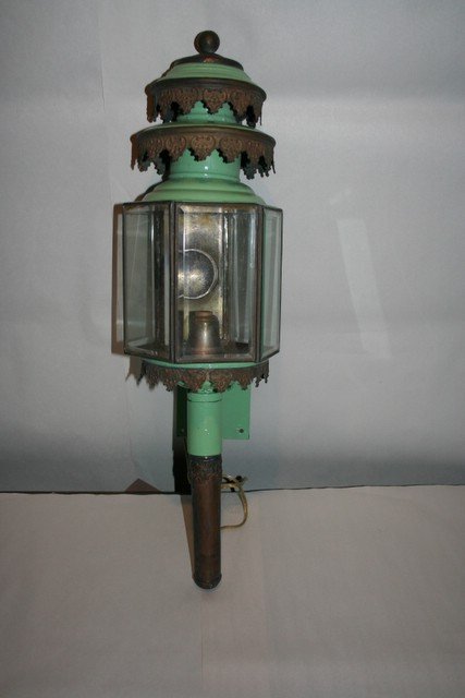 GREEN PAINTED WALL MOUNTED CARRIAGE LANTERN, L.25