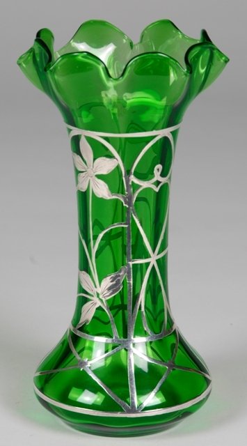 Green Silver Overlay Vase