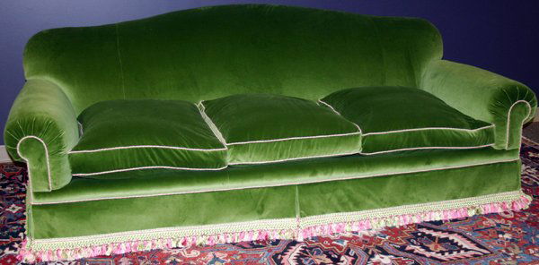 GREEN VELVET UPHOLSTERED SOFA 36"
