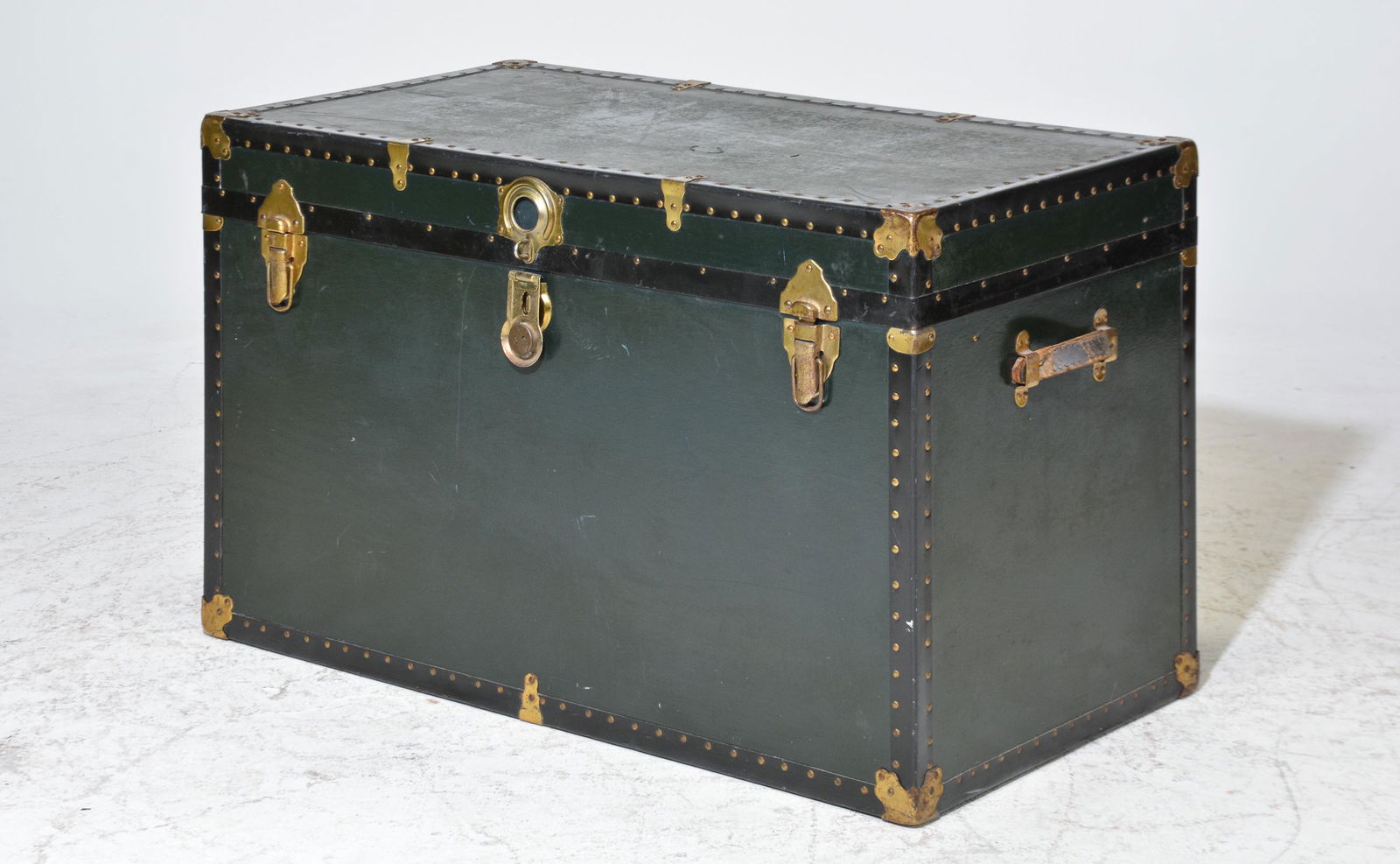 Decorative Small Trunk Wrapped in Green Embossed Leather w/Brass Handles and Sandaled FeetArarity Auctions4.7(206)$110(3 bids)3 hrs Left
