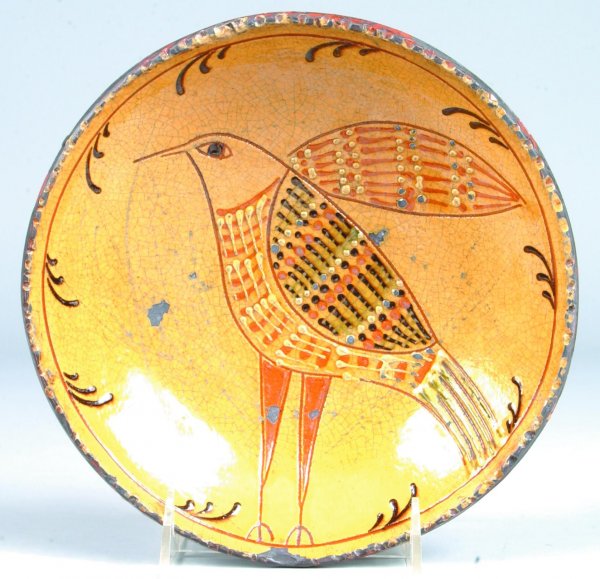 Greg Shooner 2003 Redware Sgraffito Bird Decorated