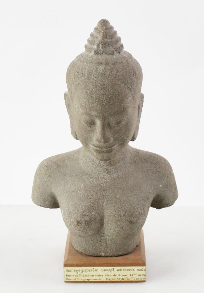 Grey Stone Carved Bust on Base