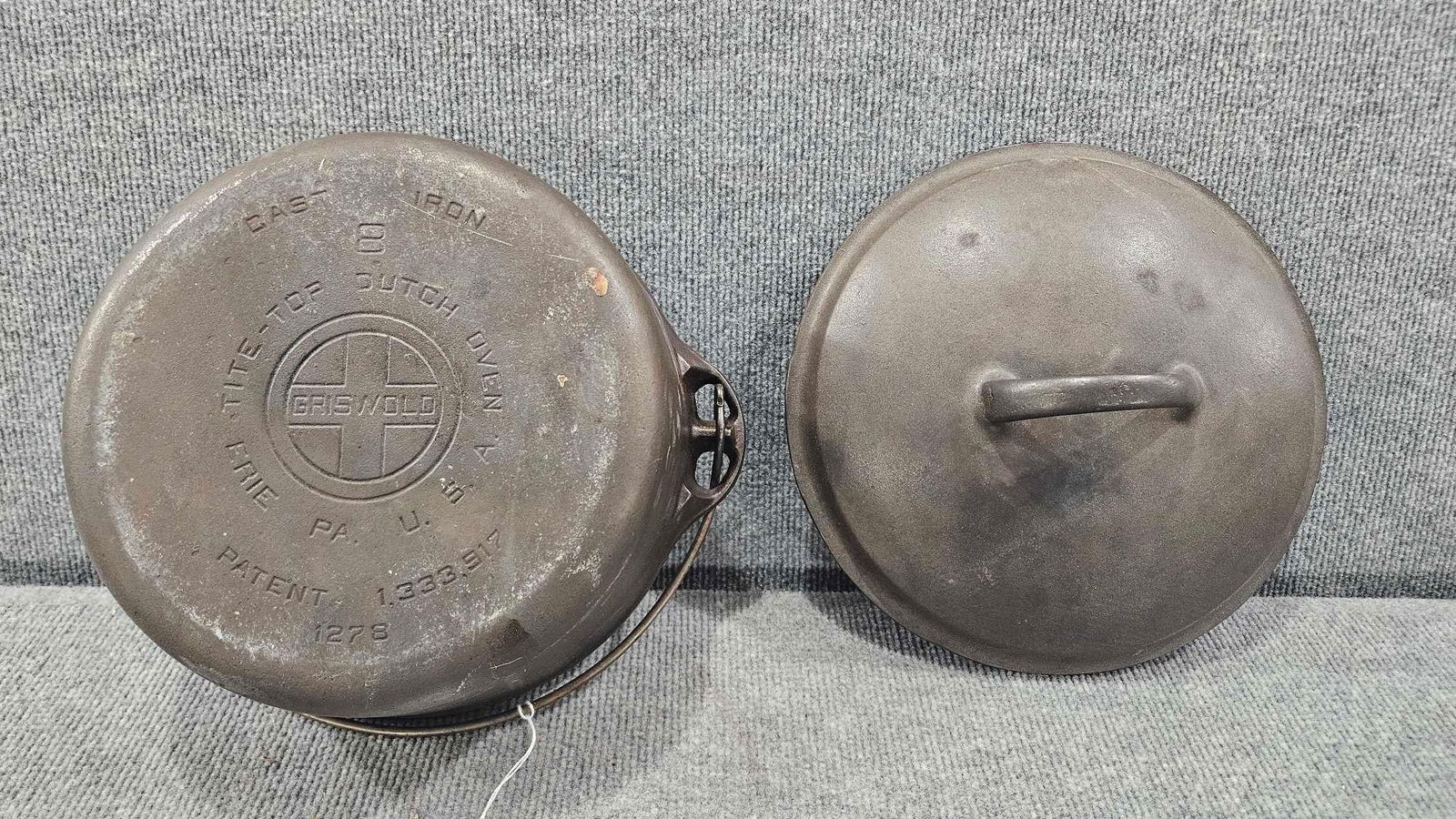 Lot of old copper cookwares, including nest of (3) pots with spouts ( two with lids ), another cover2 days LeftCzech Cold War Era Steel Helmet & US Gas MaskGriswold Cast Iron Skillet Ashtray w/MatchholderWW2 German Mess Kit, Luftwaffe CaseLe Creuset Cast Iron Oval Dutch Oven & Skillet Set Red Enamel Orange Base6 days LeftVintage Brass Candlestick & Candle HoldersFeb 17, 2026GRISWOLD NO. 12 SMALL BLOCK CAST IRON SKILLET, USA, NEEDS RESTORED, DOES NOT SIT FLATFeb 19, 2026Cast Iron Skillet & Tortilla PressFeb 14, 2026Cast Iron Lodge Skillet & Grill PanFeb 14, 2026Antique Miniature Copper Cookware Set, 19th Century Style, Group of 9Feb 20, 2026Griswold Large Block Logo No. 8 Cast Iron Skillet & No. 9 Large Block Logo GriddleMar 02, 2026#2 and #3 Cast Iron SkilletsSet of 5 Cast Iron PansFeb 12, 2026LARGE 16 QUART BAYOU CLASSIC CAMP DUTCH OVEN W/ MATCHING LIDFeb 19, 2026Vintage 5 Quart Cast Iron Dutch Oven with Ringed Lid901 Lots AwayPair of Unmarked 8 & 10 1/2 inch Cast Iron Skillets, 4h x 16w x 12d inches