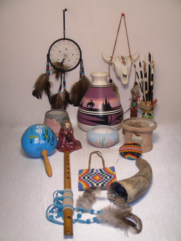 GROUP ASSORTED NATIVE AMERICAN DECORATIVE ITEMS