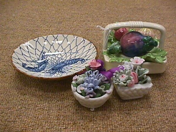 GROUP ASSORTED PORCELAIN FLOWERS DISH ETC