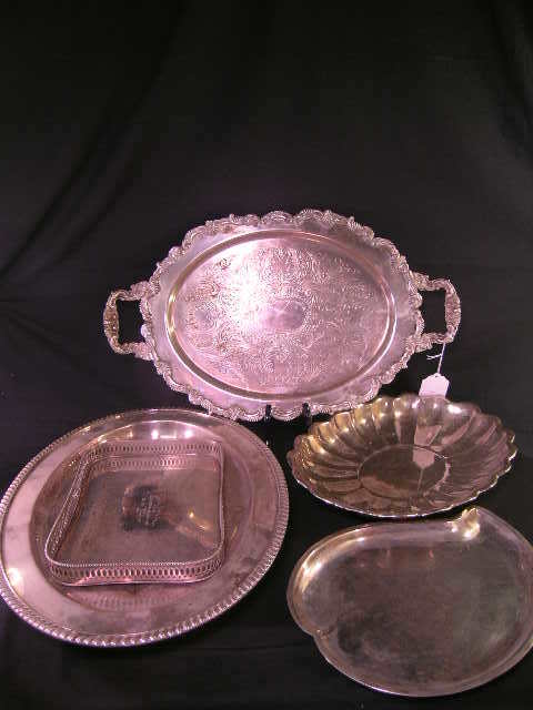 GROUP ASSORTED SILVER PLATE TRAYS 5 PCS