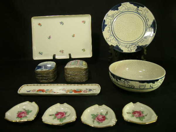 GROUP ASST PORCELAIN CERAMIC BOXES TRAYS ETC 10 PC