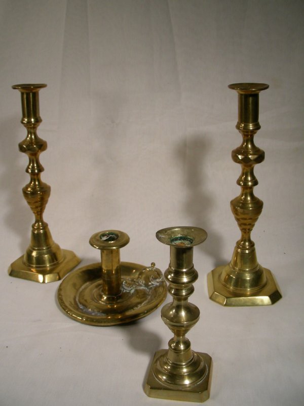 GROUP BRASS CANDLESTICKS ASSORT SIZES FOUR PIECES